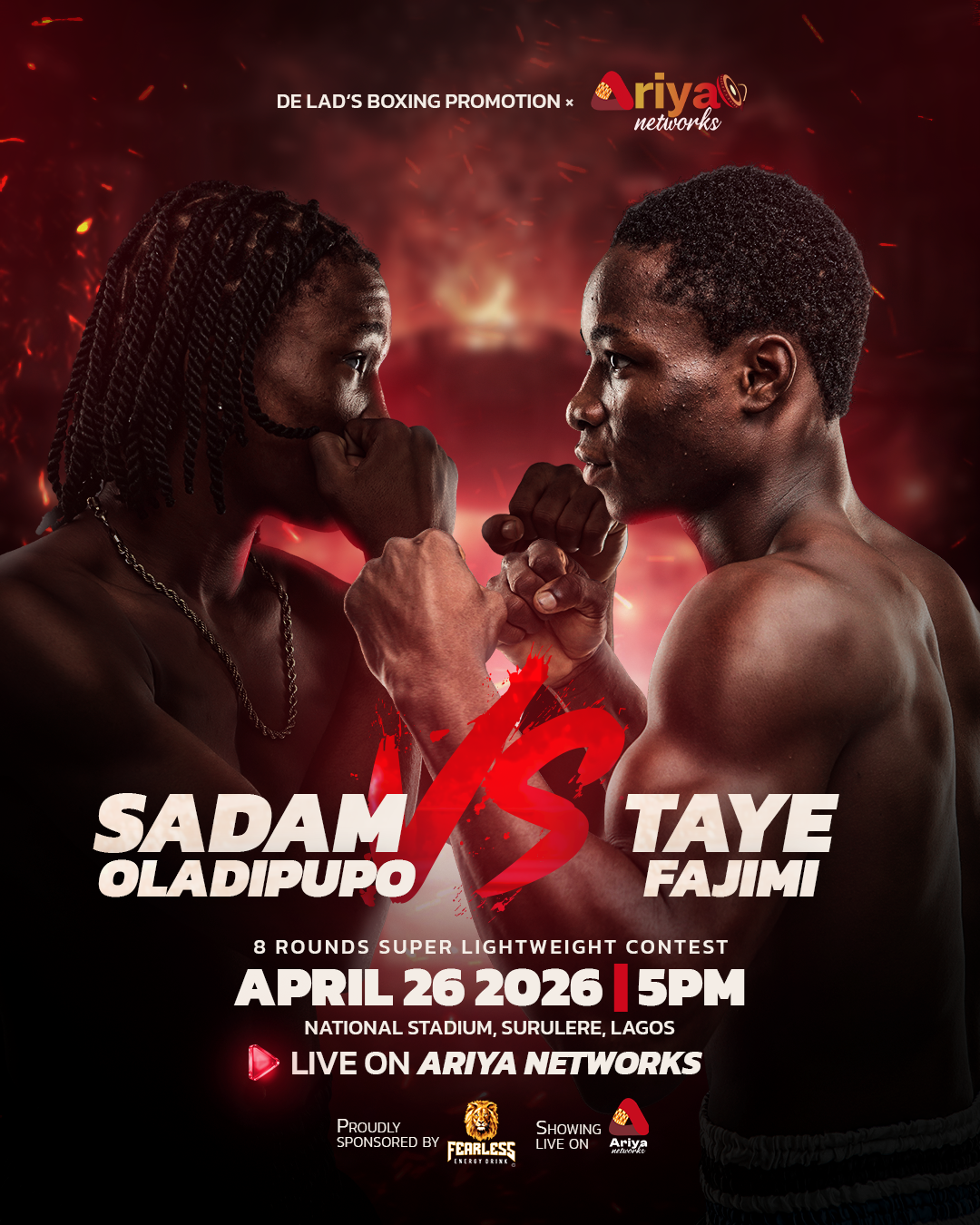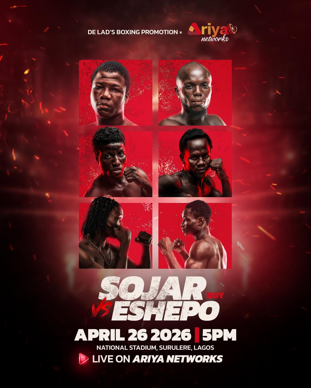 Download Ariya Networks on Google Playstore Download Ariya Networks on Appstore Official Broadcasting Partner for DELAD'S BOXING PROMOTION Subscribe to our socials and stay tuned to our news Visit www.acn.international for lastest news around africa Facebook Twitter Instagram visit Ariya Networks to download the app Download Ariya Networks on Google Playstore Download Ariya Networks on Apple Playstore